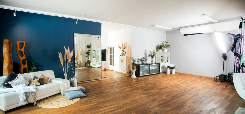 • Studio mit durchdachtem Lichtkonzept für natürliche Aufnahmen.